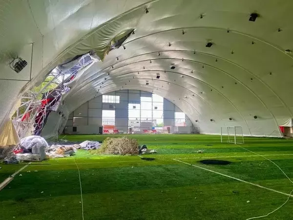Манеж был поврежден во время атаки беспилотников 24 июня. Как рассказывают родители воспитанников, «Авангард» загорелся от упавших обломков сбитого аппарата. По словам горожан, сгорело тентовое покрытие, поплавился каркас манежа, передняя стена не подлежит восстановлению. Критически повреждено и покрытие футбольного поля. Эти конструкции уже нельзя отремонтировать — требуется полная замена.